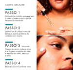 Aplique de 3 a 5 gotas pela manhã, sobre a pele limpa e seca, espalhando no rosto, pescoço e colo. Utilize protetor solar em seguida para potencializar os resultados.