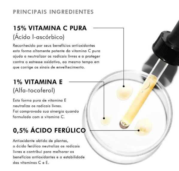O Sérum Rejuvenescedor Facial C E Ferulic SkinCeuticals 30ml foi criado para oferecer luminosidade, firmeza e viço à pele, trazendo uma sensação de revitalização desde os primeiros usos. Sua textura leve espalha facilmente e é rapidamente absorvida, proporcionando um acabamento confortável mesmo em rotinas agitadas. A combinação de ativos presentes no produto ajuda a melhorar a aparência de linhas finas e deixar o tom da pele mais uniforme, garantindo um aspecto mais saudável e radiante ao longo do uso.